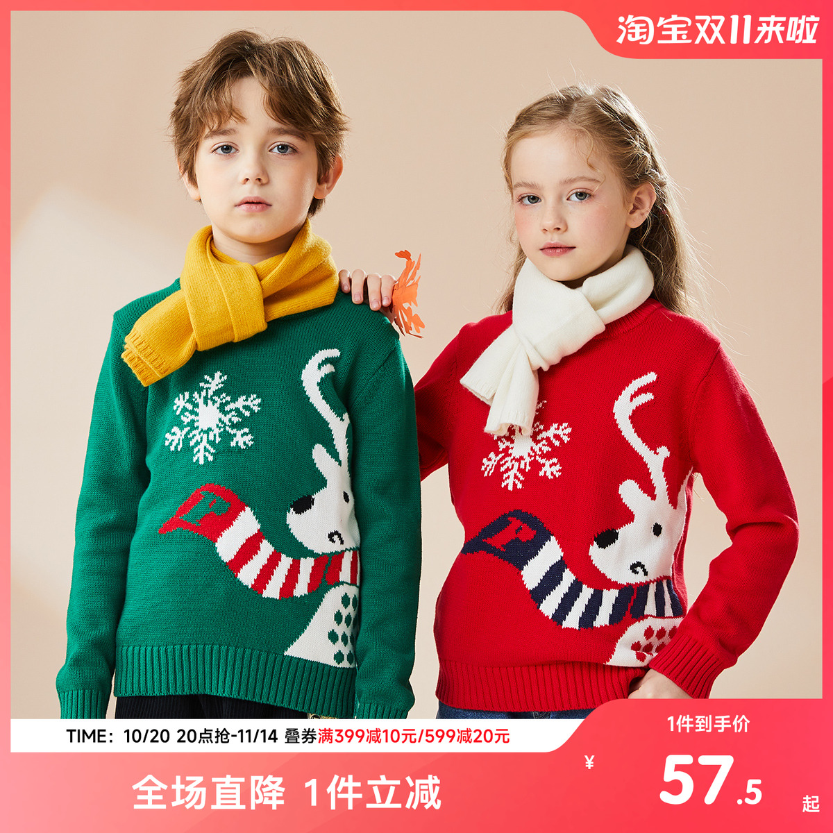 暇步士童装儿童毛衣25秋冬新品男童线衣保暖宝宝女童休闲套头毛衣
