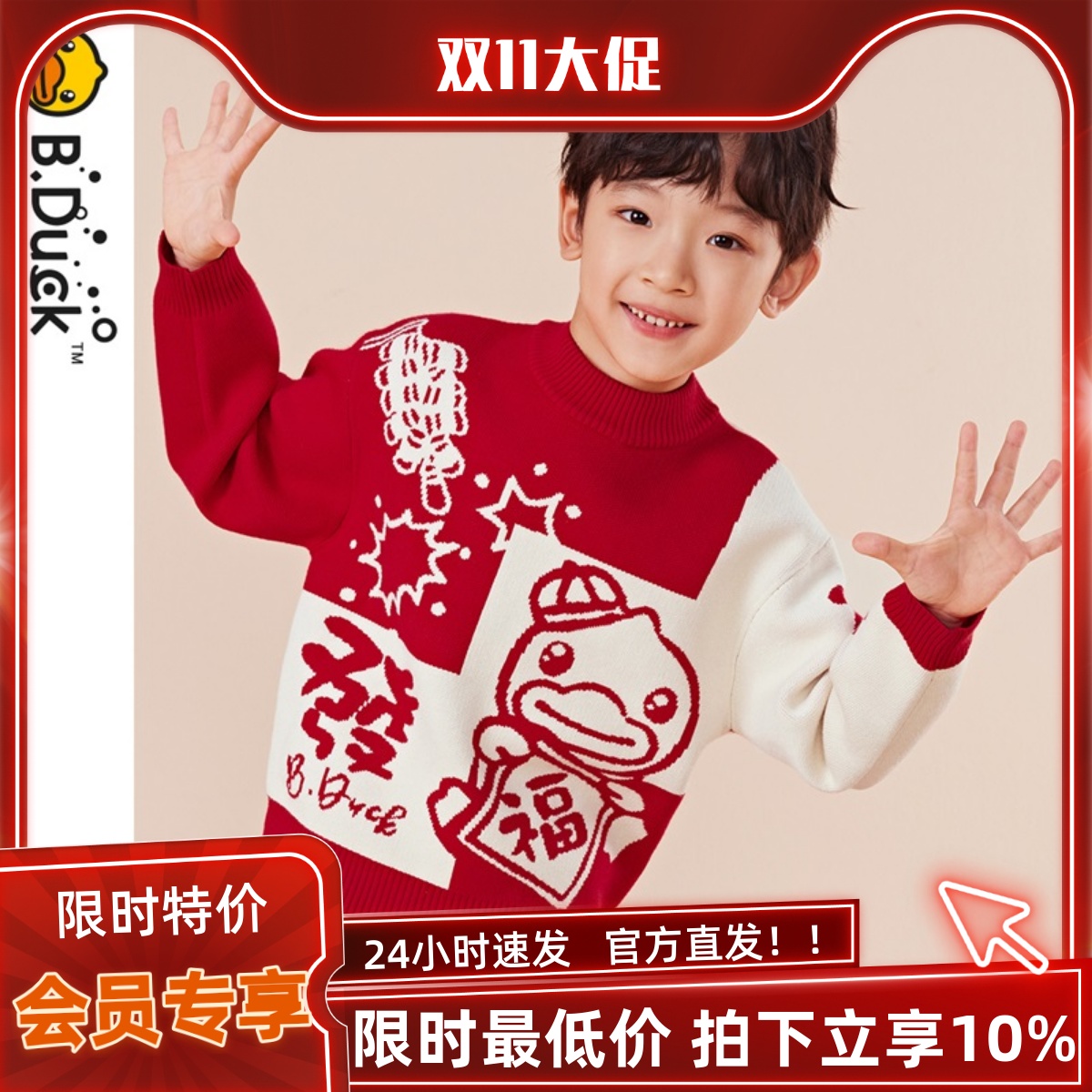 bduck小黄鸭童装儿童毛衣男童毛衫保暖冬季新款红色女童针织衫厚