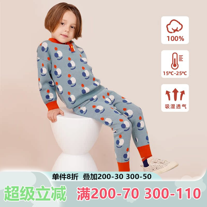 mibi儿童套装春秋新款女童针织衫上衣裤子2件套男童毛衫纯棉毛衣