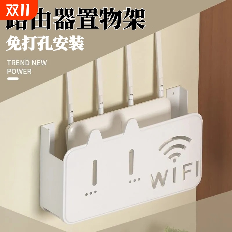 猫咪路由器置物架无线电视机顶盒wifi放置架壁挂式免打孔收纳盒子
