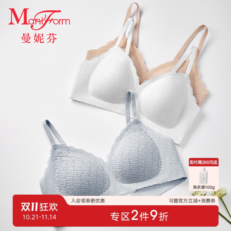曼妮芬少女文胸无钢圈无痕蕾丝内衣运动风学生透气胸罩20400435