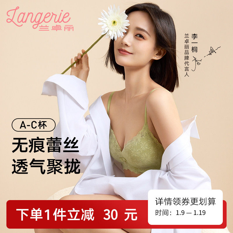 【李一桐同款】兰卓丽无痕花语无钢圈蕾丝内衣女聚拢内衣小胸显大