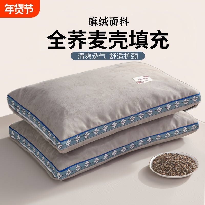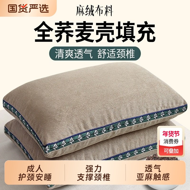 荞麦壳枕头成人家用荞麦皮全棉护颈椎助睡眠专用枕芯学生宿舍高枕