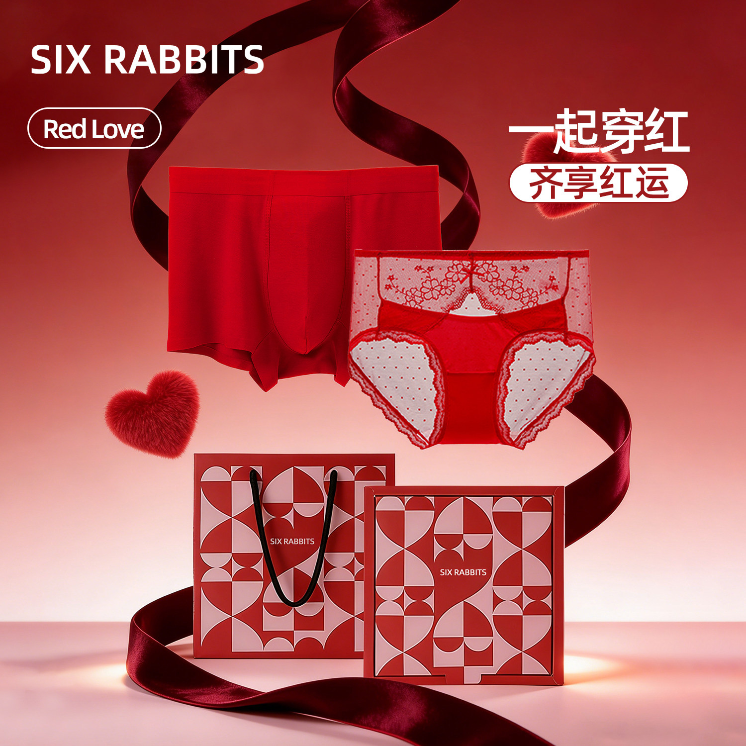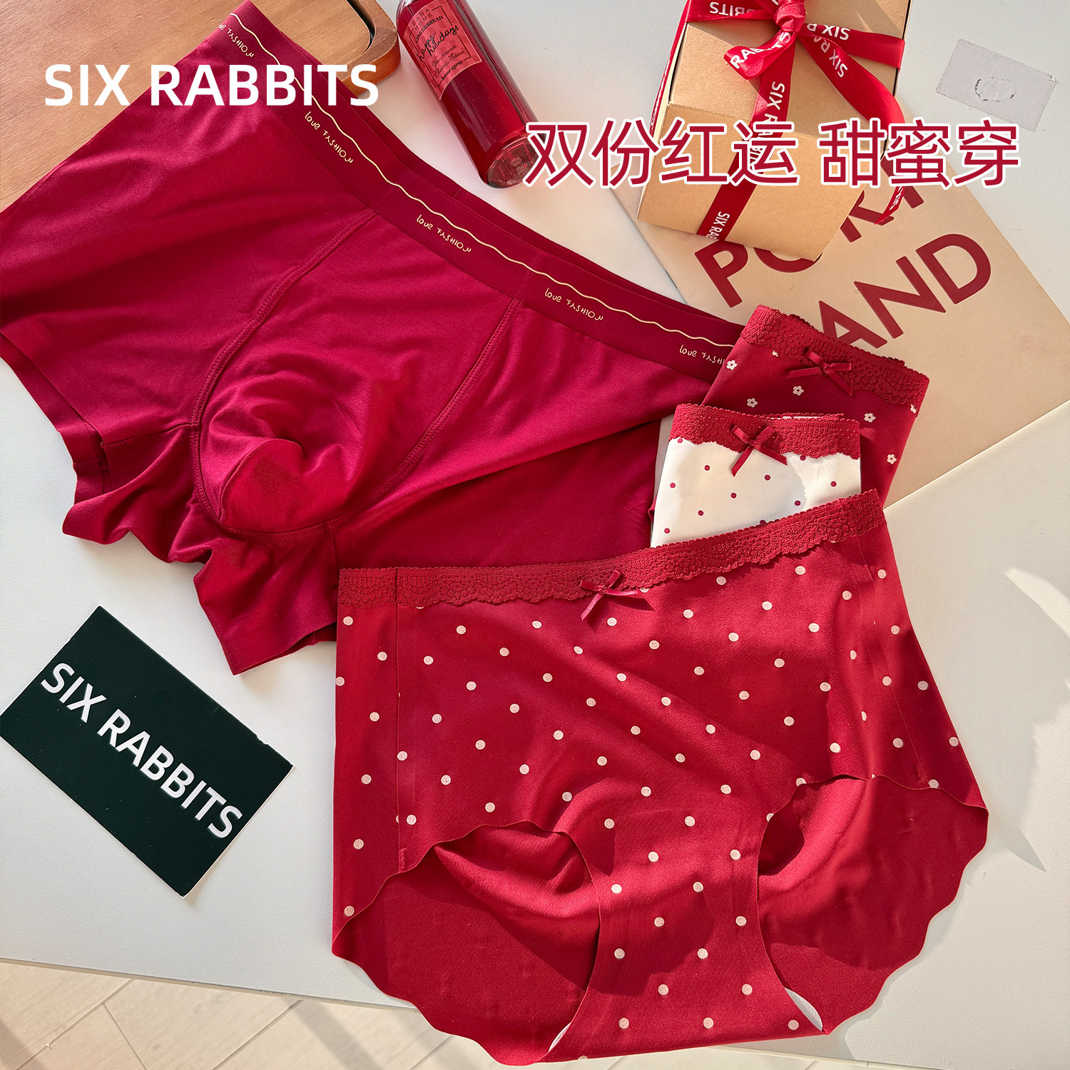 六只兔子红色情侣内裤一男一女抗菌透气裆本命年结婚三角裤平角裤