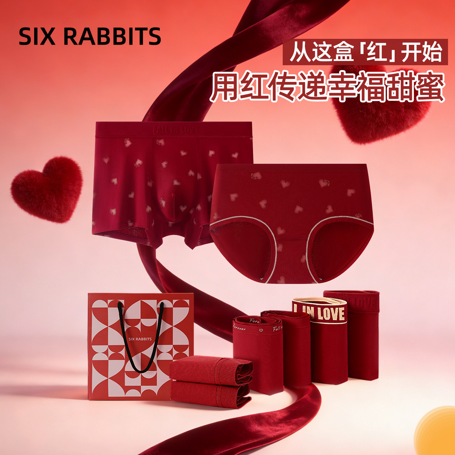 六只兔子情侣内裤结婚薄款抑菌底裆平角裤中腰包臀三角裤礼盒套装
