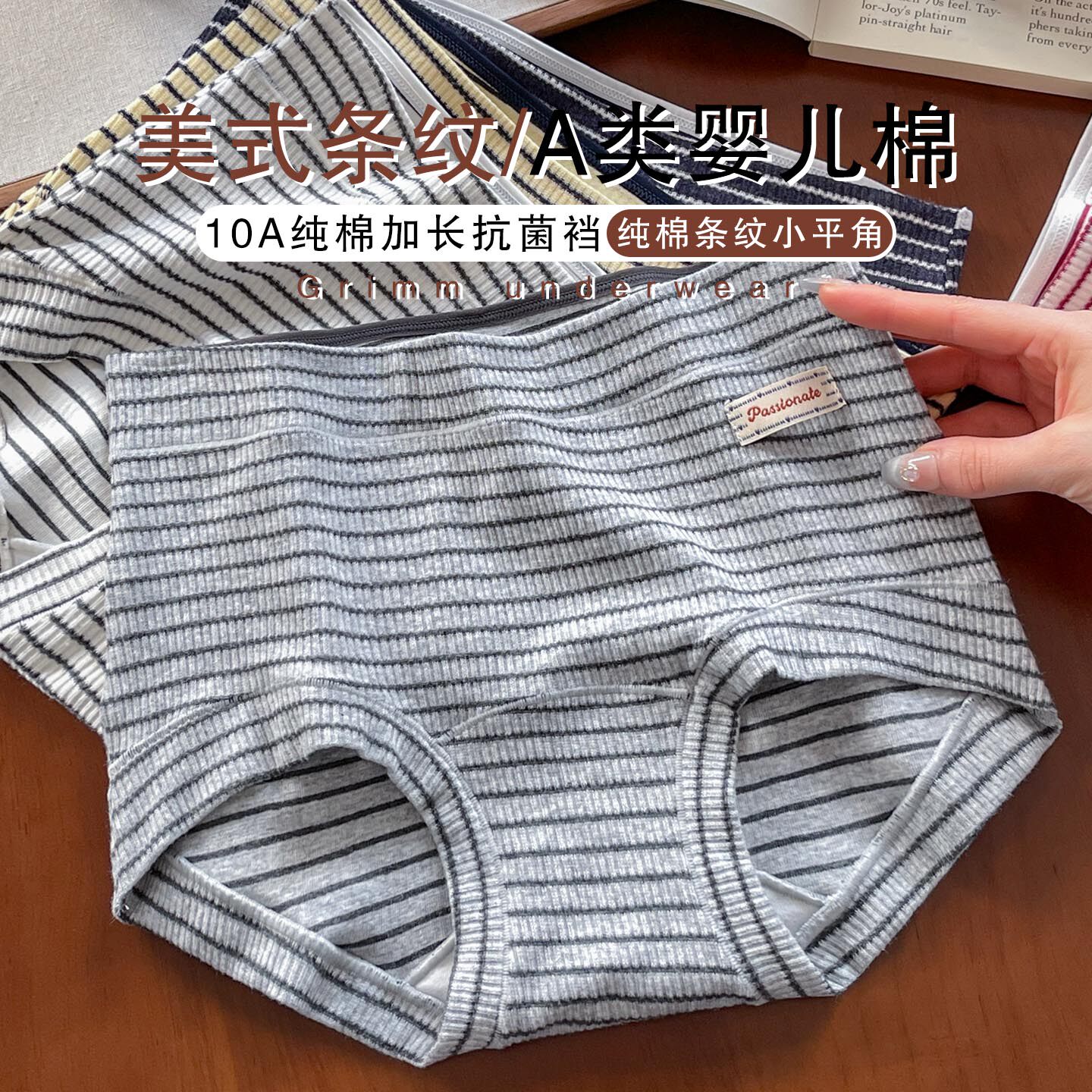 内裤女款2025新款条纹纯棉平角裤10A抗菌裆少女全棉大码胖MM短裤
