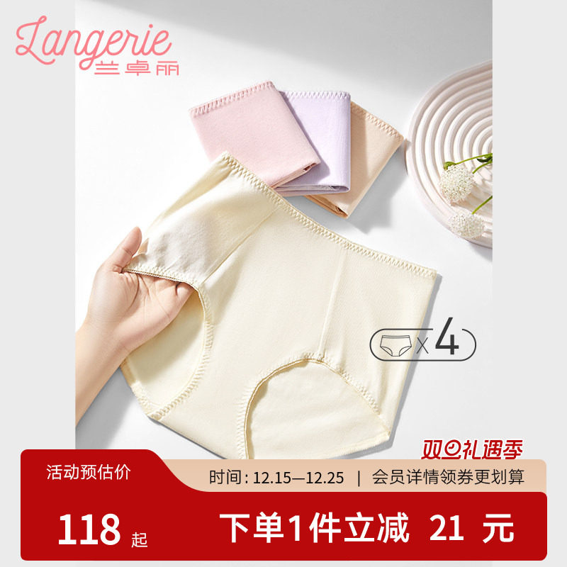 【4条装】兰卓丽2025新款高腰平角裤抗菌透气底裆内裤女夏季薄款