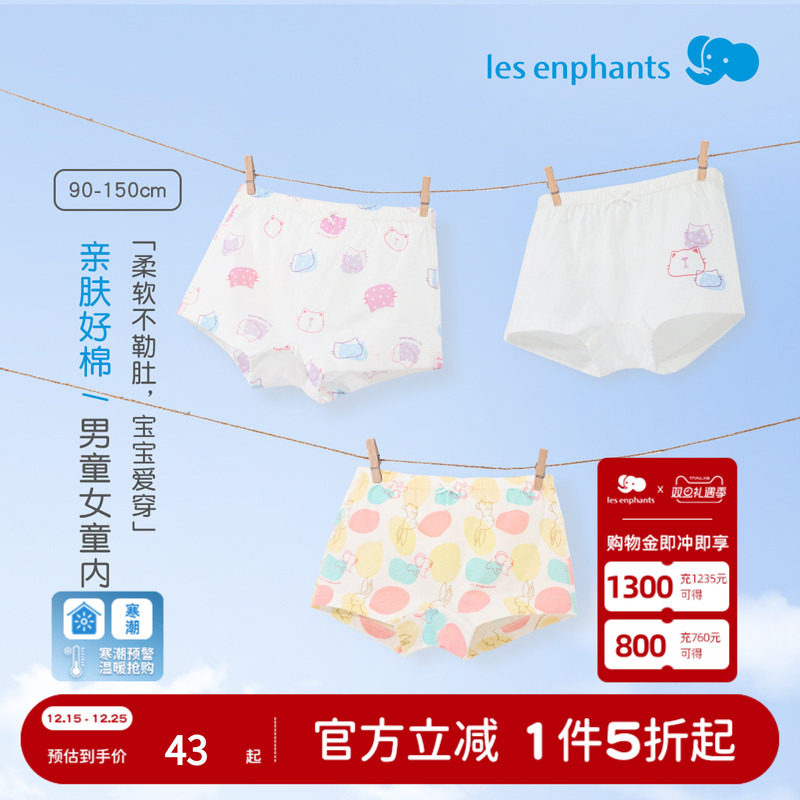 [5A抗菌|纯棉】丽婴房儿童内裤男女童四角短裤不夹PP平角裤三条装