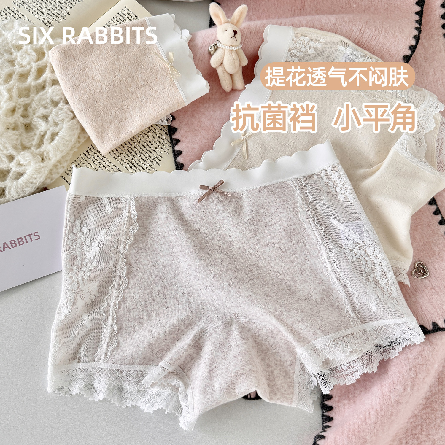 六只兔子三条装蕾丝内裤女10A抑菌纯棉底裆短裤中腰全包臀平角裤