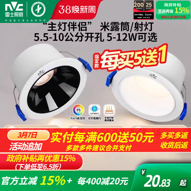 雷士照明led筒灯嵌入式天花灯防眩射灯洞灯客厅吊顶过道孔灯米露