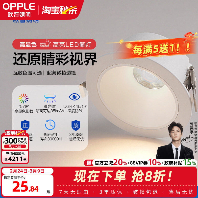 欧普led筒灯嵌入式家用客厅天花灯开孔75mm桶灯牛眼射灯孔灯洞灯