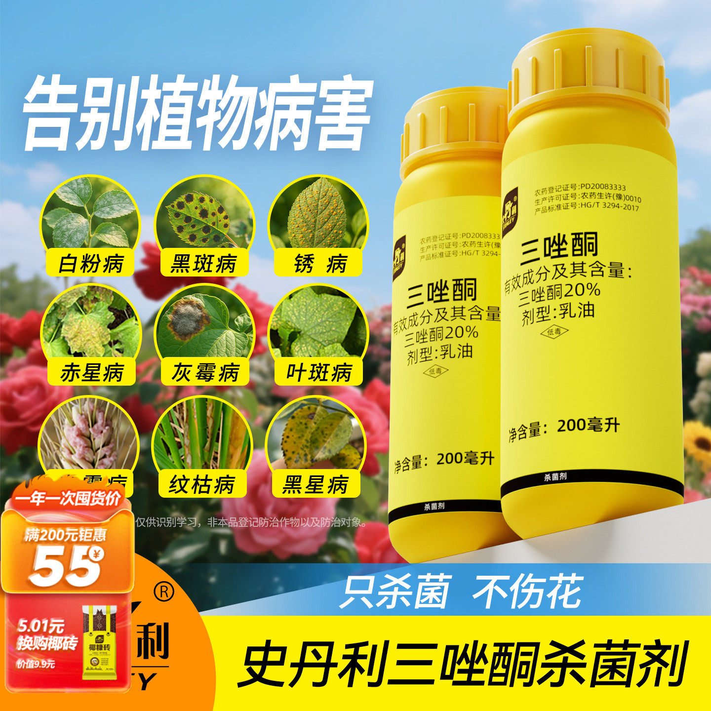 史丹利三唑酮杀菌剂花卉白粉黑斑病专用多肉月季花病虫害常用花药