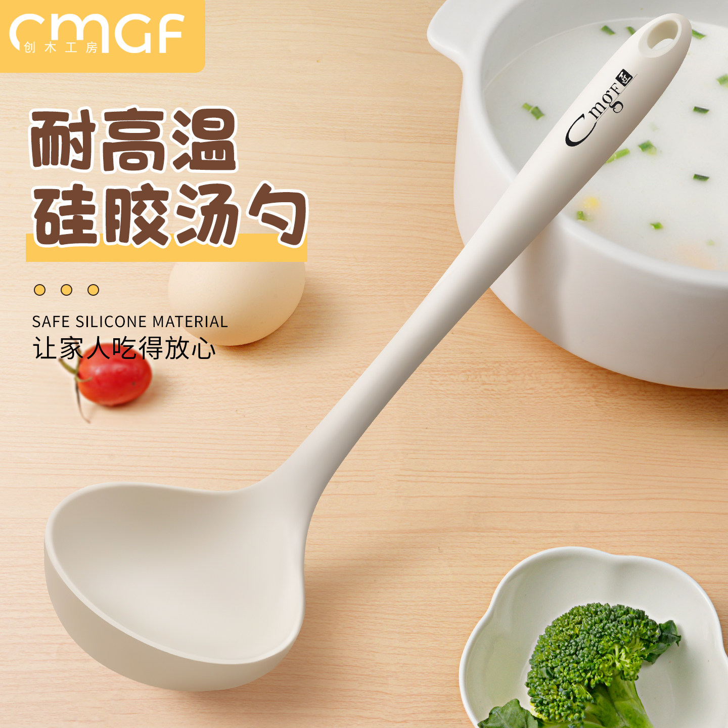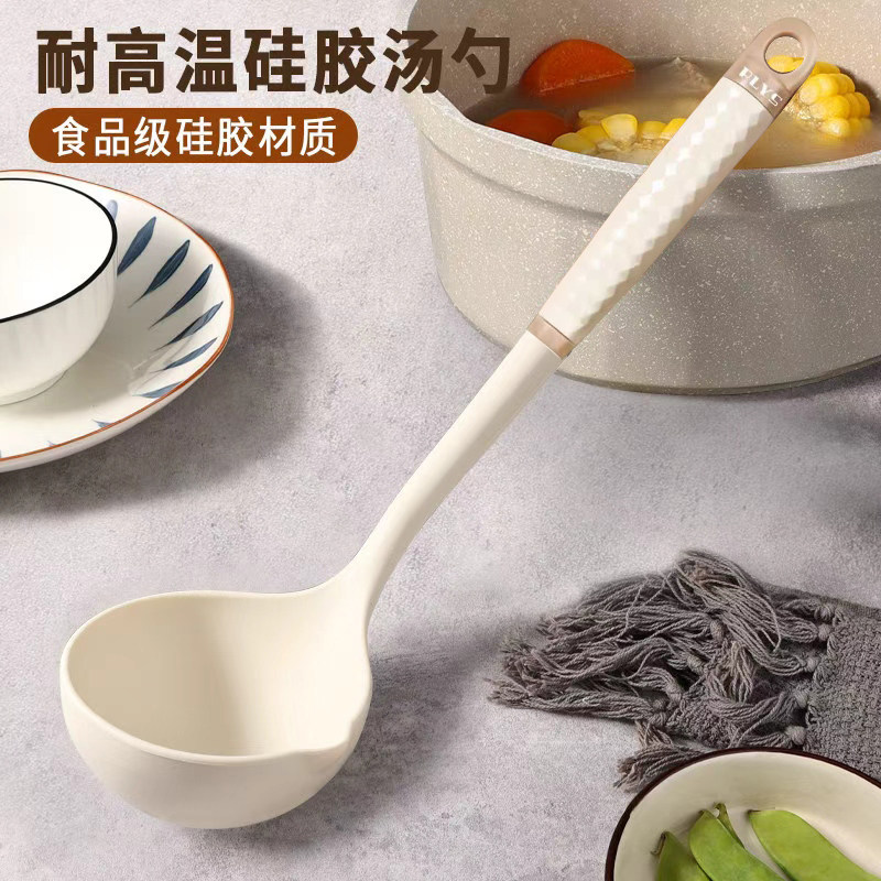 德国家用汤勺高档精致硅胶勺子不粘锅专用长柄食品级大号盛汤粥勺