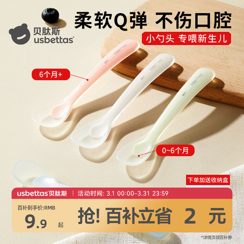 贝肽斯硅胶勺子新生婴儿辅食勺子宝宝吃饭喂奶新生儿专用硅胶软勺