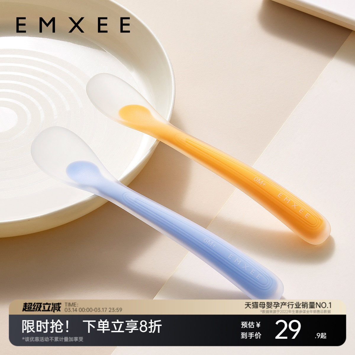 百yeesoom宝宝硅胶勺子新生婴儿喂水小勺子儿童餐具软头硅胶软勺