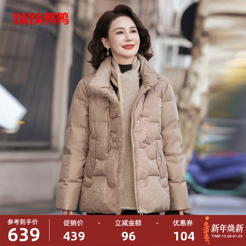鸭鸭羽绒服女2025年冬季新款中老年加厚中长款立领妈妈装短外套S