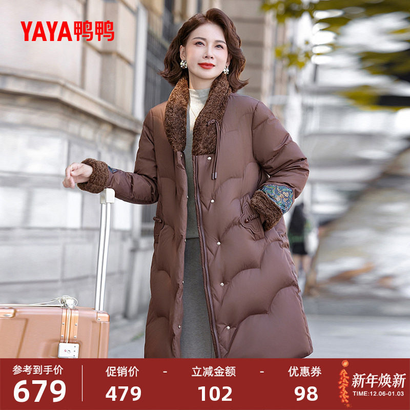 鸭鸭羽绒服女2025冬季新款中老年洋气中长款保暖妈妈装休闲外套A