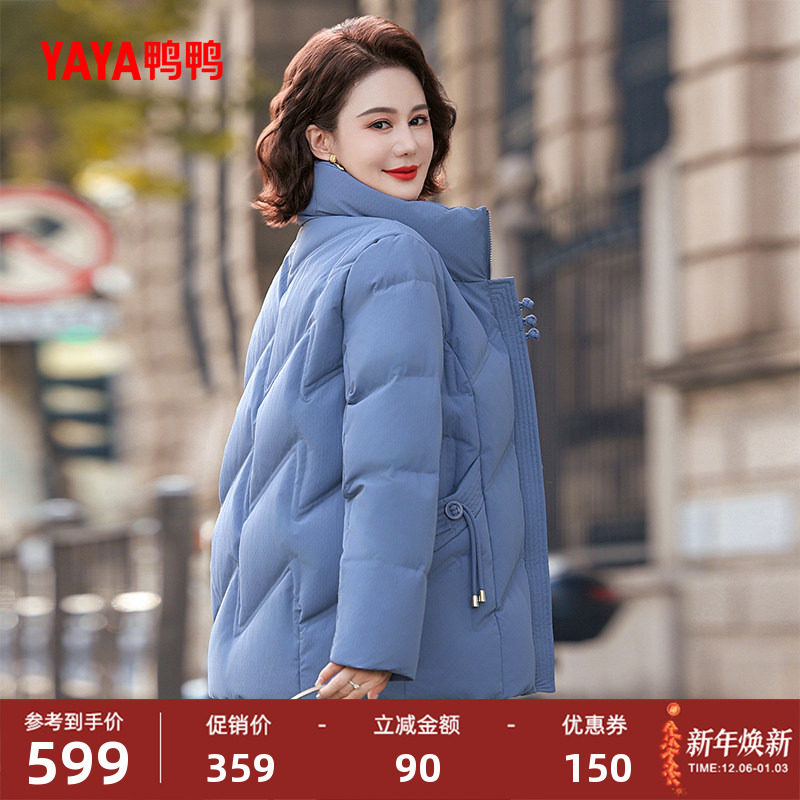 鸭鸭羽绒服女2025年秋冬新款中老年加厚中长款立领妈妈装厚外套S