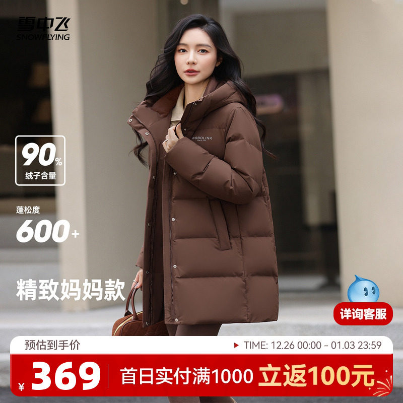 雪中飞2025冬新款女士90绒短款保暖连帽羽绒服中长款中老年妈妈款
