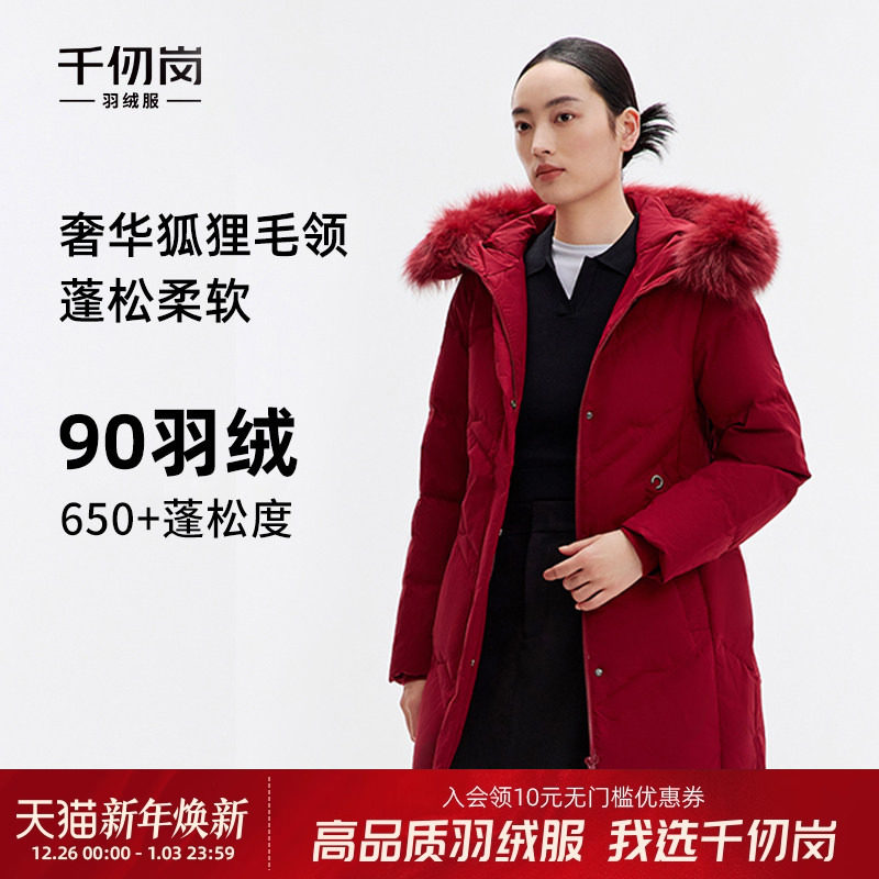 千仞岗中长款狐狸毛领连帽中老年送妈妈保暖加厚百搭羽绒服外套女