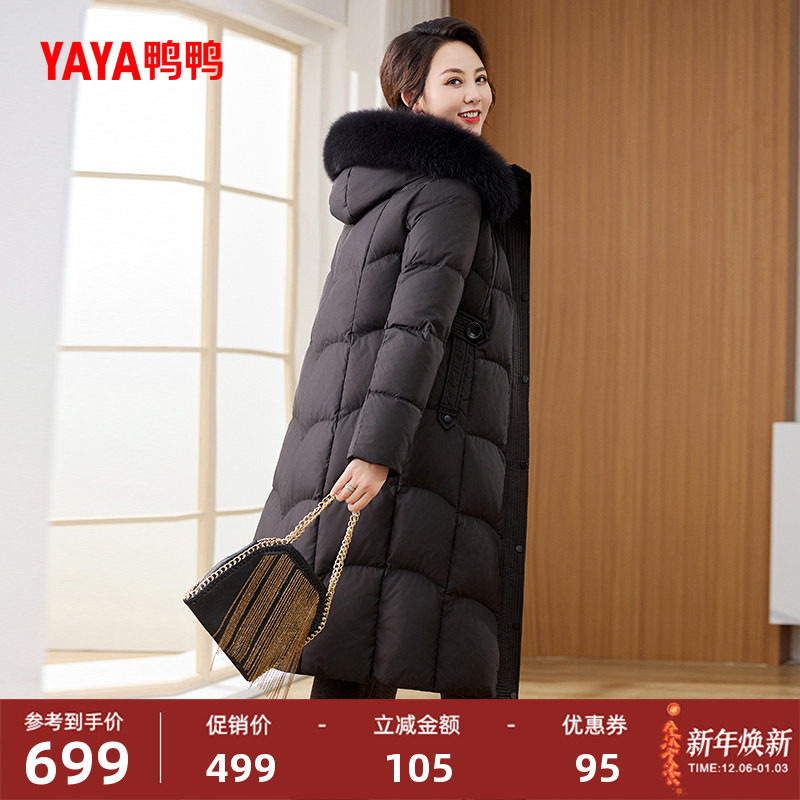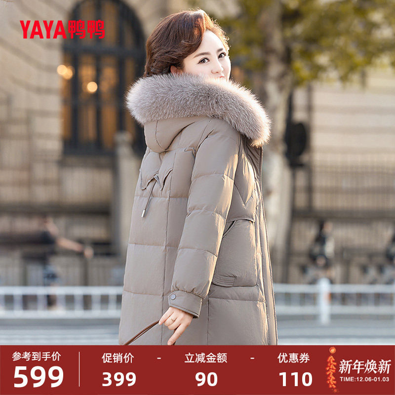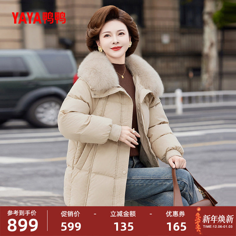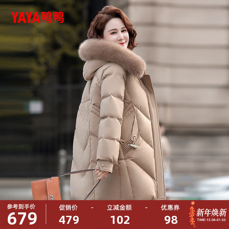 鸭鸭羽绒服女2025冬季新款中老年中长款狐狸毛领妈妈装保暖外套Y
