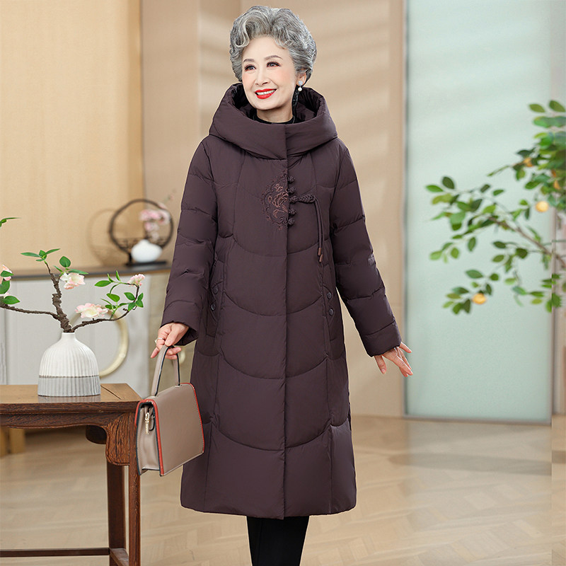 中老年羽绒服女长款过膝加厚保暖妈妈装大码宽松奶奶冬季鸭绒外套