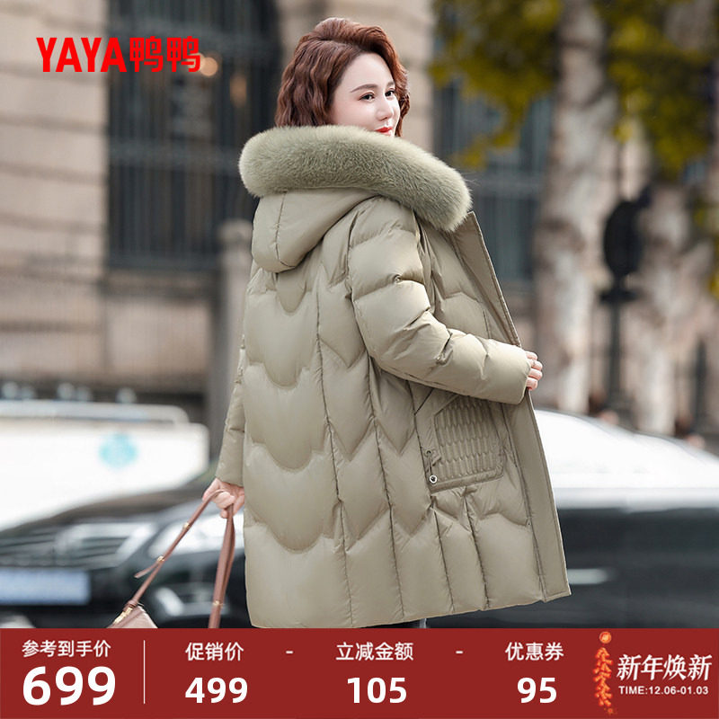 鸭鸭羽绒服女2025冬季新品中老年加厚中长款毛领妈妈装连帽外套S