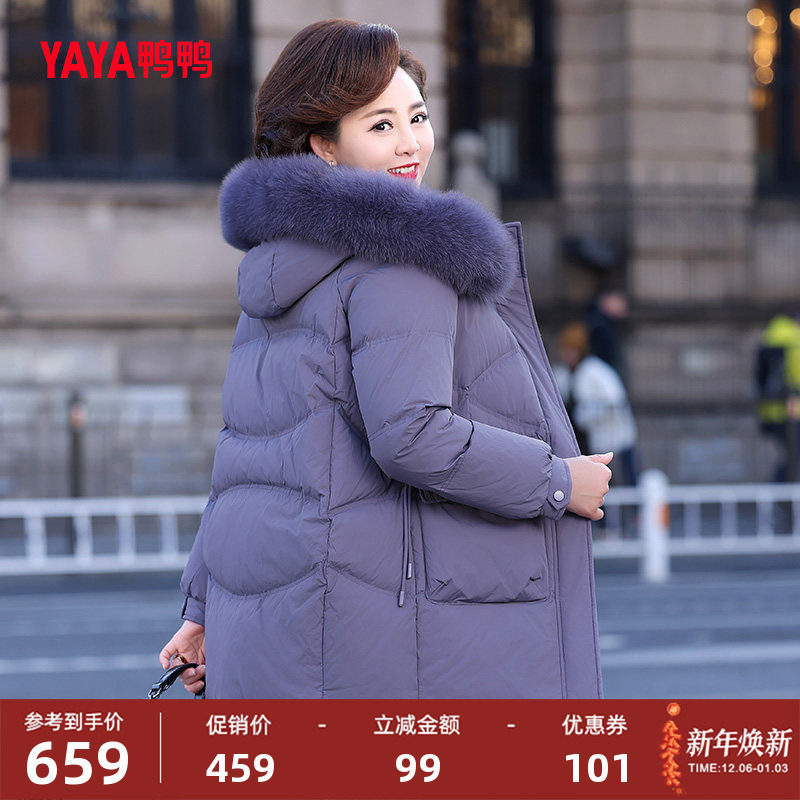鸭鸭羽绒服女2025冬季新款中老年中长款狐狸毛领保暖妈妈装外套Y