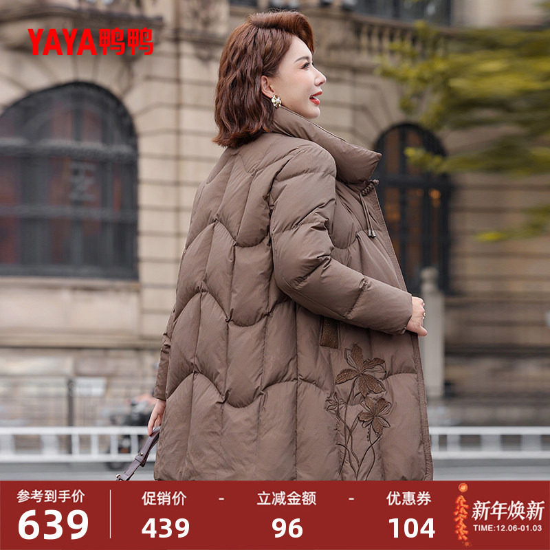 鸭鸭羽绒服女中长款2025冬季新款妈妈装加厚中老年宽松白鸭绒外套