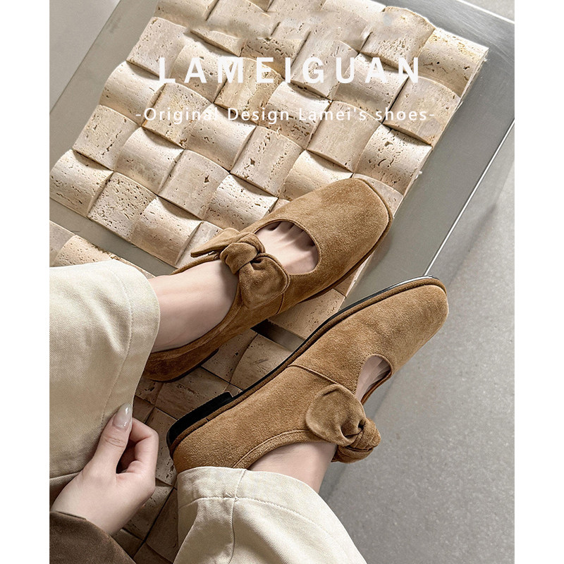 2025春夏新款复古交叉绑带玛丽珍鞋真皮平底浅口单鞋小众芭蕾舞鞋