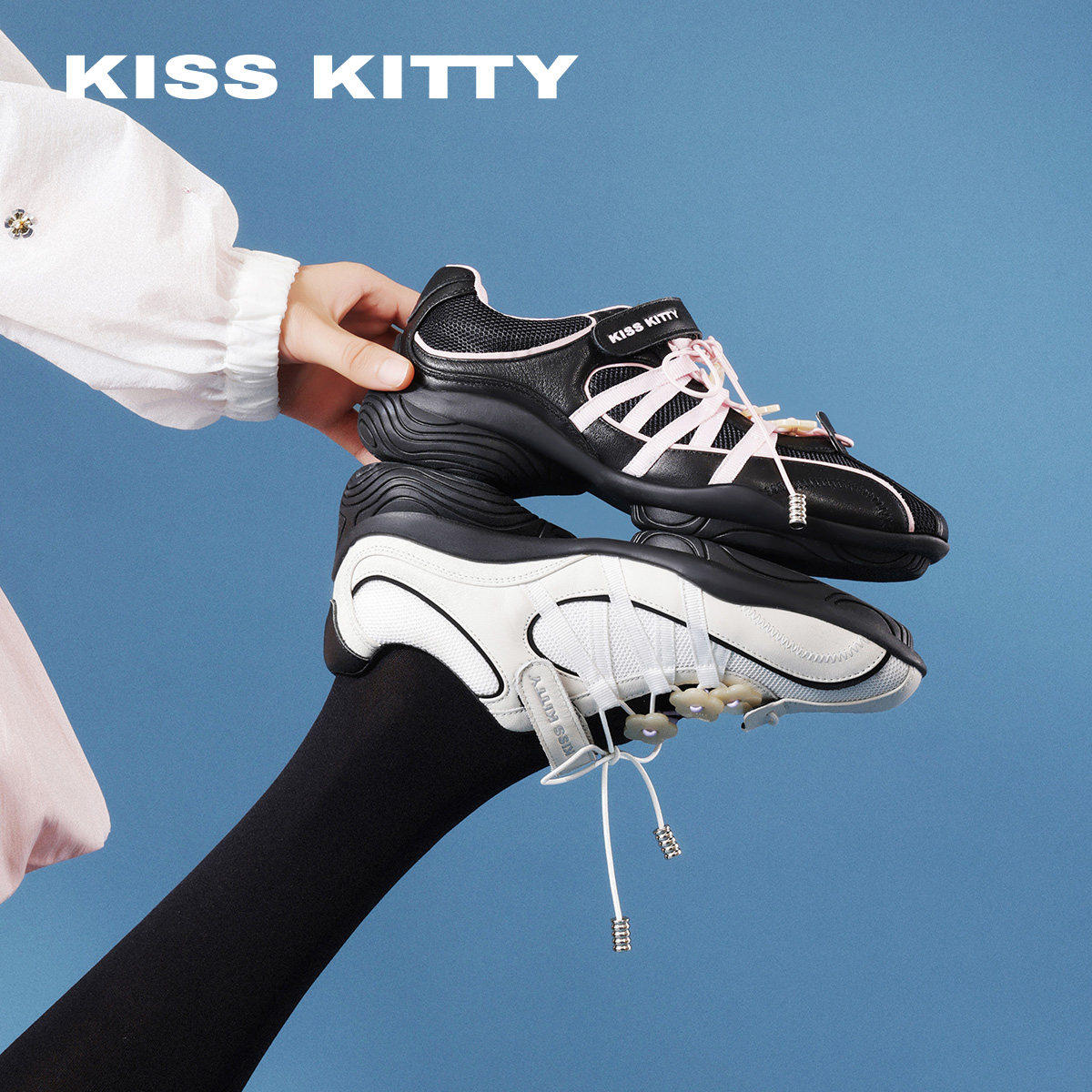 KISSKITTY德训鞋女款2026春新款法式芭蕾绑带平底鞋赛车休闲鞋