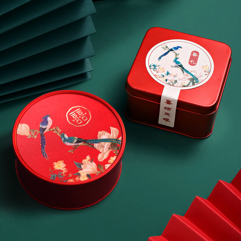 免折叠新款结婚礼中式圆形铁盒子摆桌喜糖盒高级感糖果伴手回礼盒