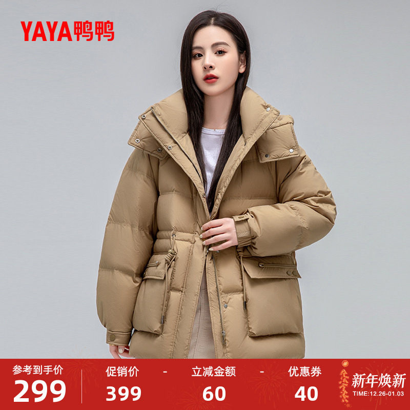 鸭鸭羽绒服女士2025冬季新品中长款潮流高端连帽加厚保暖鸭绒外套