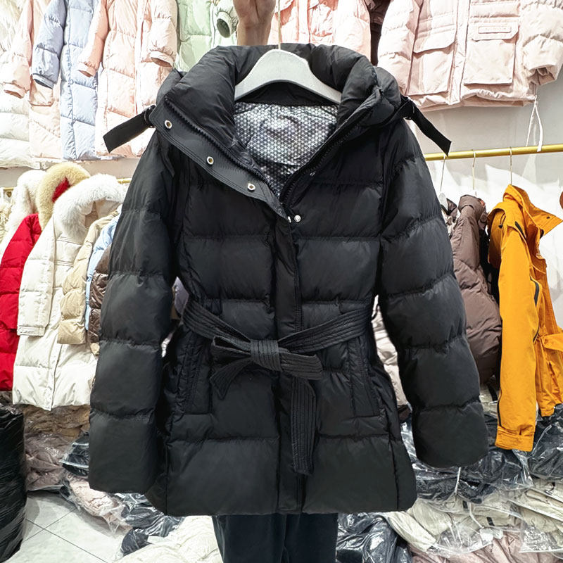 2025年冬新款高端中长款羽绒服女连帽腰带收腰显瘦加厚白鸭绒外套