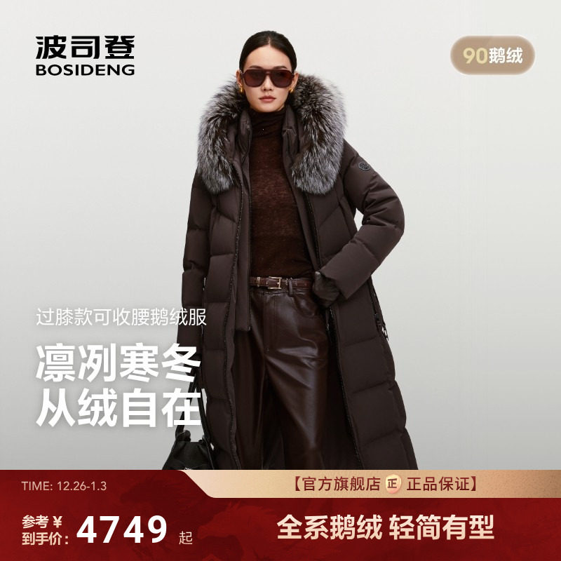 波司登2025新款羽绒服女高端商务90鹅绒大毛领中长款保暖加厚修身