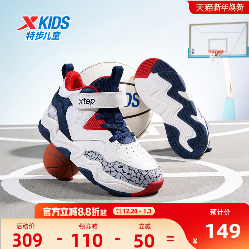 福燈贺岁|特步童鞋儿童篮球鞋男童新年款耐磨休闲中大男童运动鞋