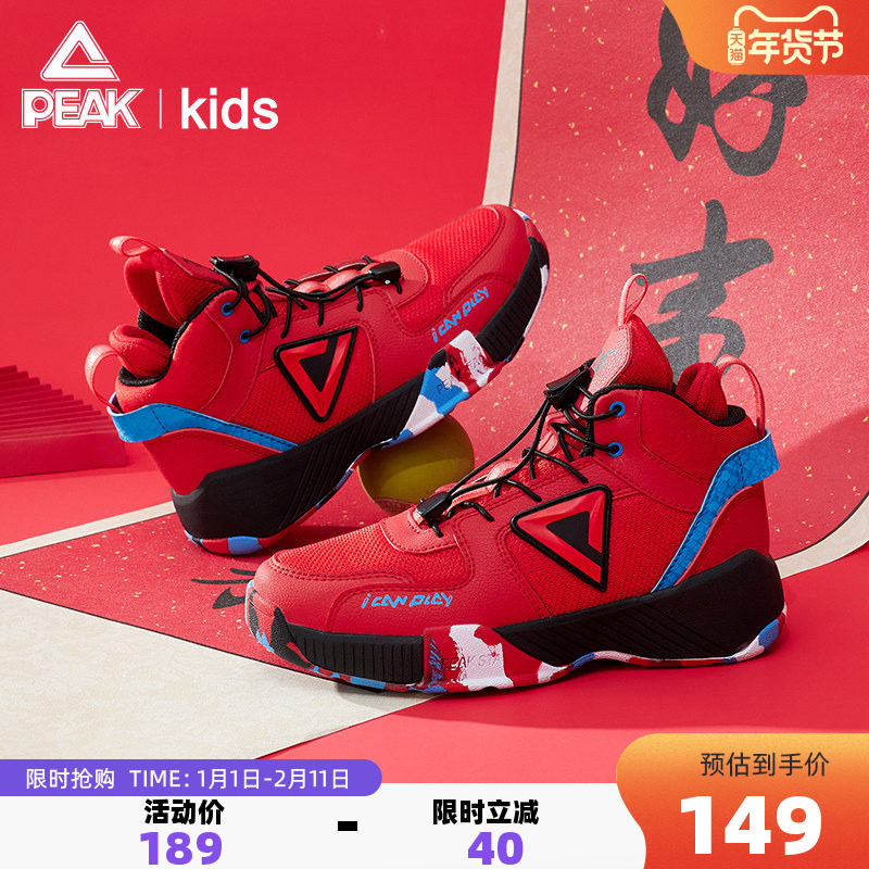 匹克童鞋儿童篮球鞋男童冬季防滑减震红色运动鞋学生迷彩跑步鞋子