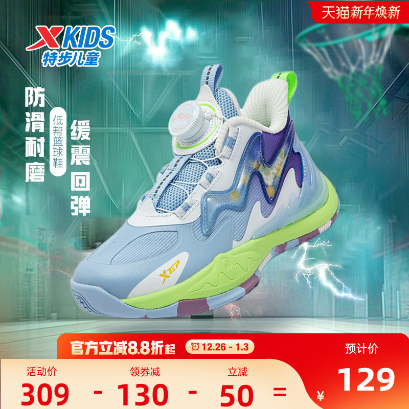 特步童鞋儿童篮球鞋旋钮扣密网男童鞋子新款耐磨球鞋运动鞋中大童