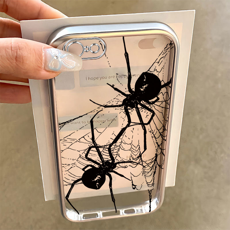 适用苹果6s/7/8plus手机壳新款iPhoneXSmax防摔XR外壳5SE软硅胶11pro全包12/13黑色蜘蛛网i14P女高级感ip15电