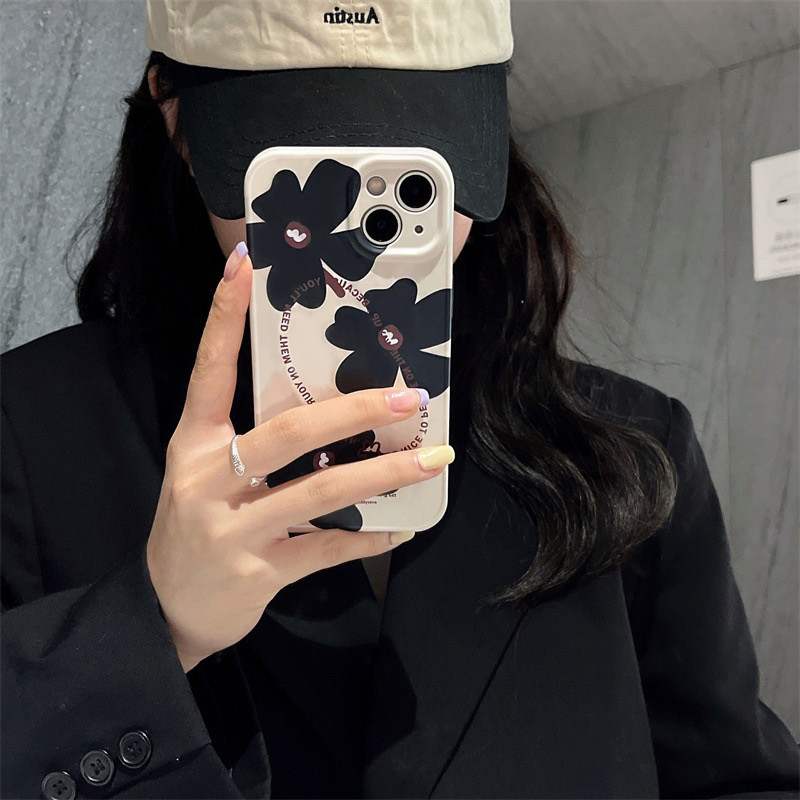 日韩小众复古黑色花朵适用iphone13/14promax苹果11手机壳12硅胶15全包x防摔xr个性7/8plus新款6s软壳xsmax女