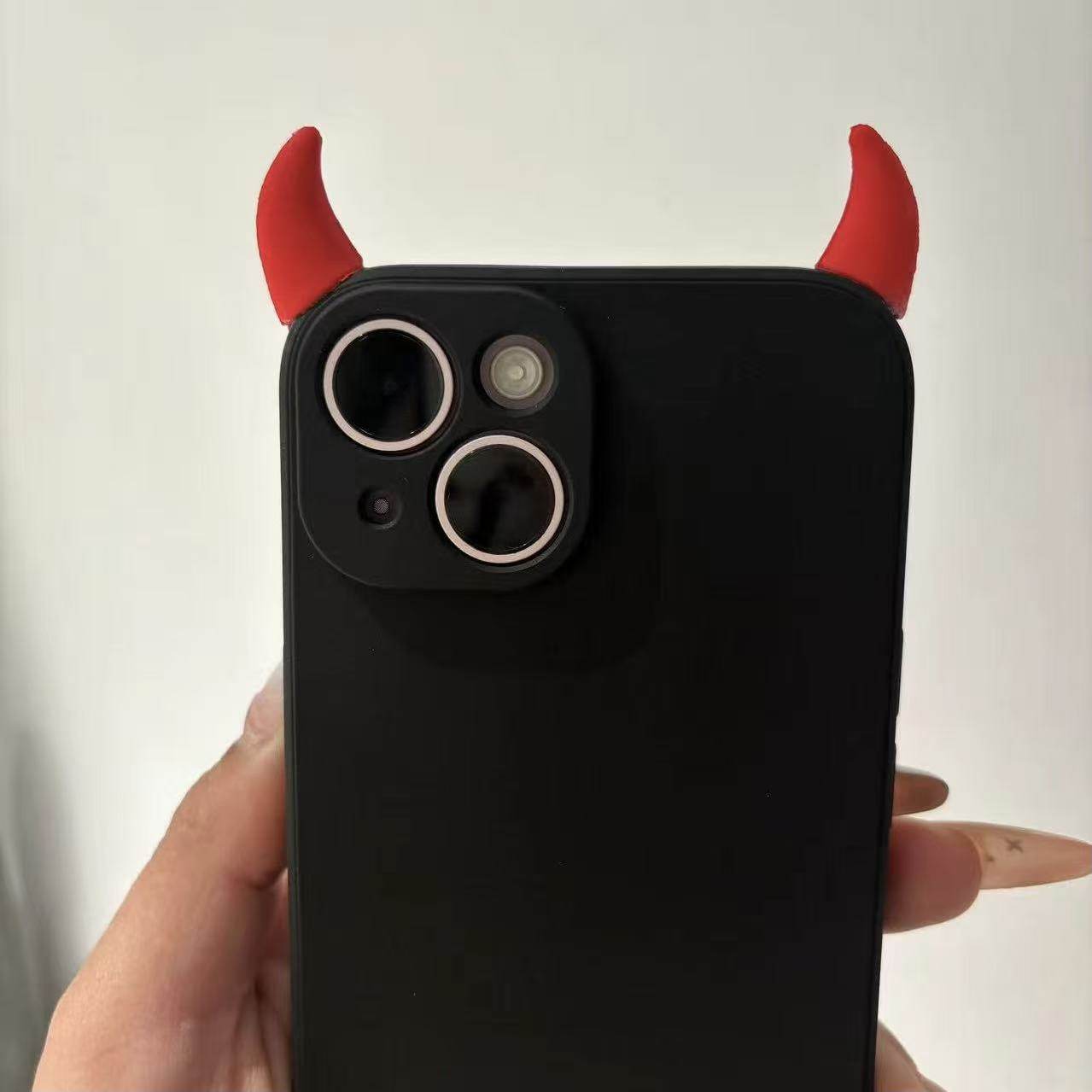 小红书小恶魔角苹果14plus网红15适用iPhone17promax/16手机壳1+15/13/12/11一加ace6/5pro/3/2全包软壳黑色