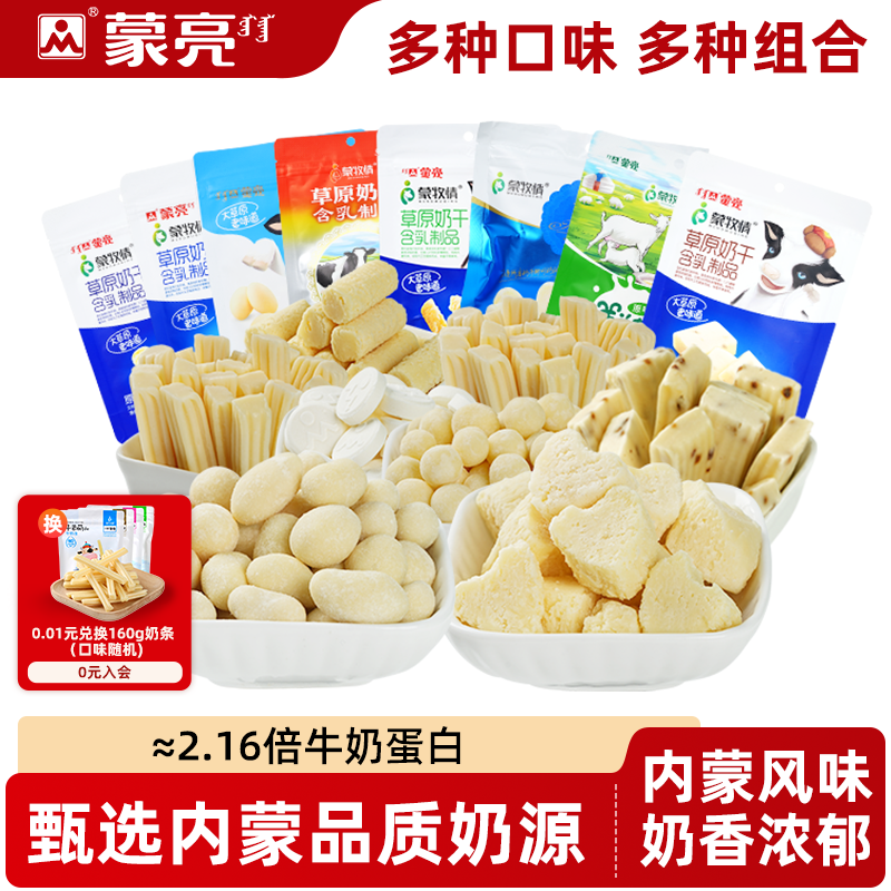蒙亮内蒙古特产草原奶酪奶贝大礼包奶干条奶制品独立包装奶酪零食