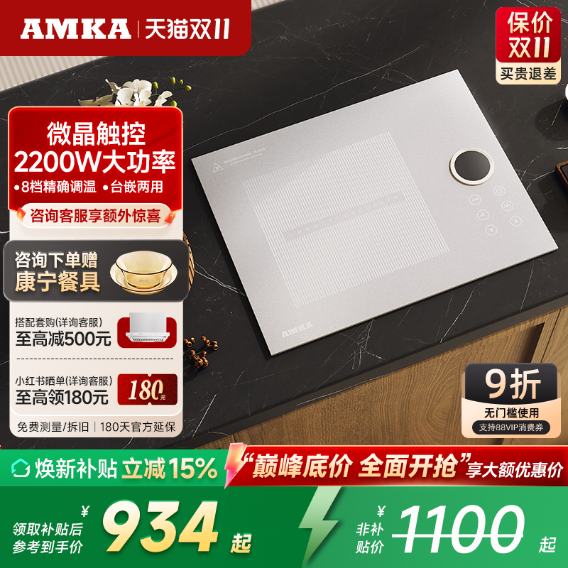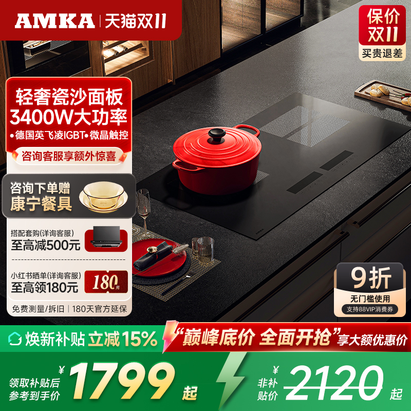 Amka嵌入式电磁炉双灶家用大功率多功能公寓内嵌式台面双眼电磁灶