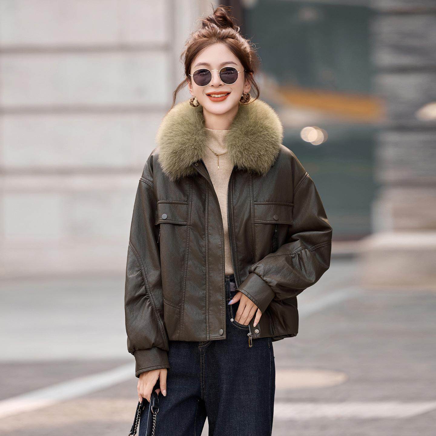 爆款加绒皮衣女士加厚短款外套2025秋冬装时尚棉服大毛领皮棉袄子