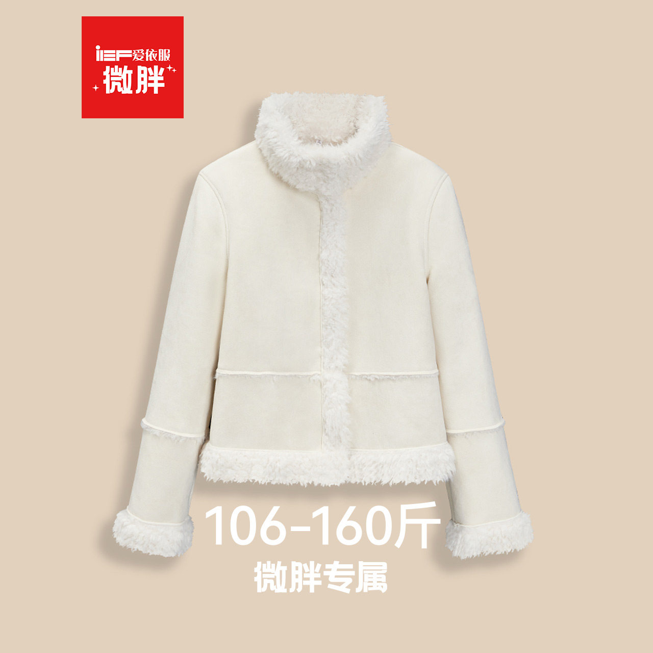 IEF/爱依服【微胖】磨砂皮外套2025冬季新款巨好看的加绒皮衣女装