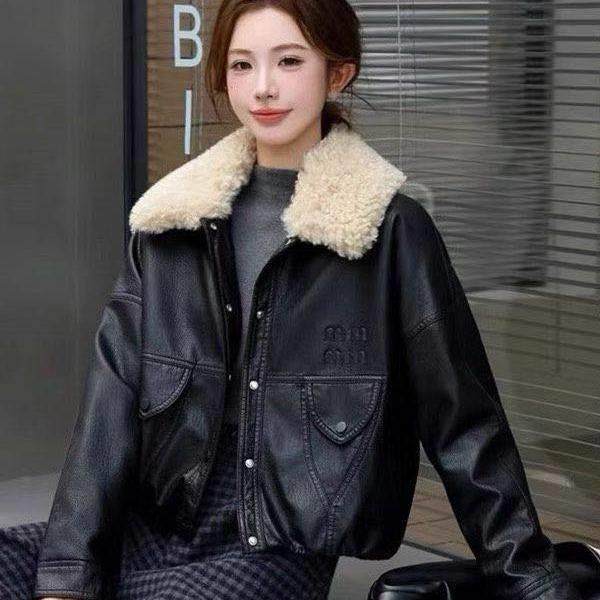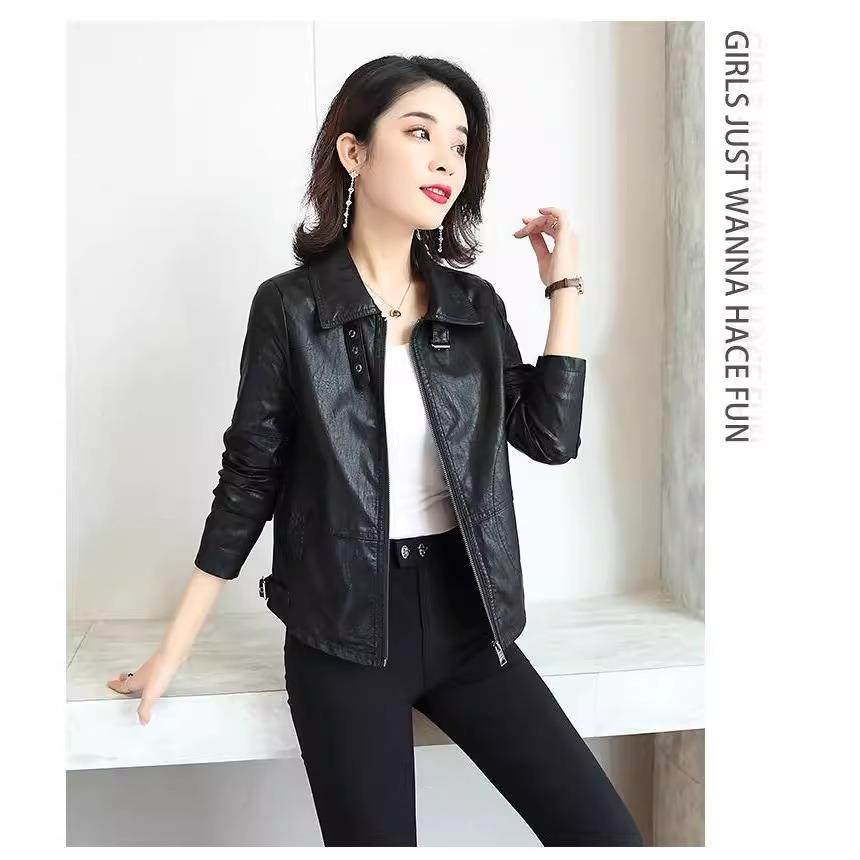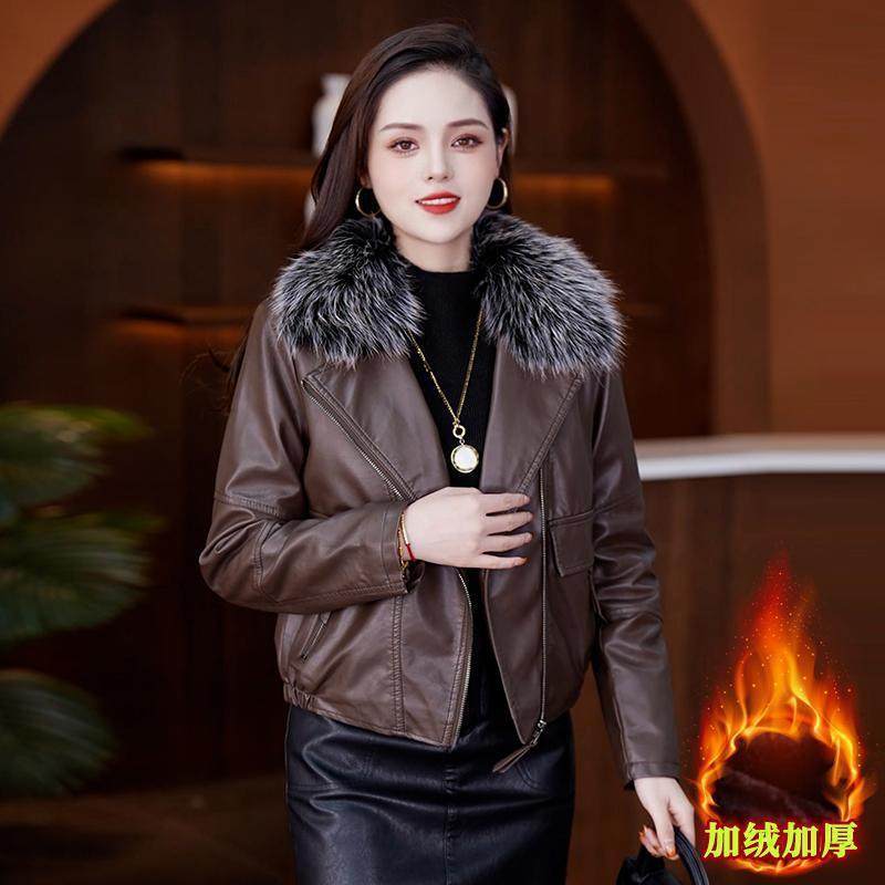 2025秋冬加绒皮衣女时尚酷飒风夹克短款保暖加厚翻领洋气百搭外套