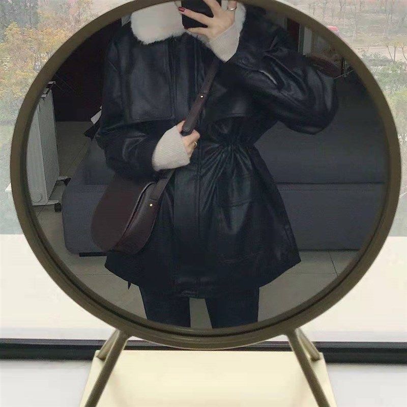 2025新款冬季真毛领中长款显瘦加绒皮衣女皮外套收腰皮风衣时尚