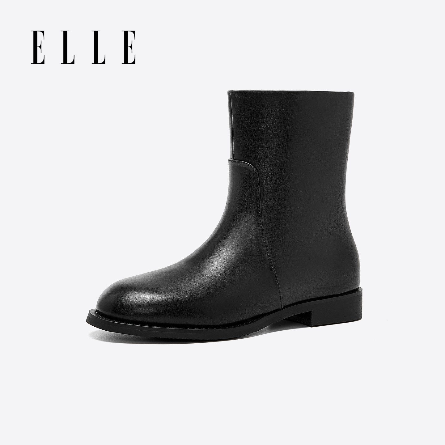 ELLE黑色英伦风短靴女靴2025新款冬季真皮女士加绒平底切尔西靴子