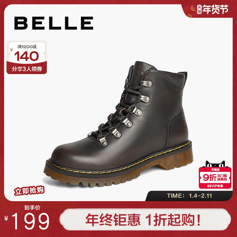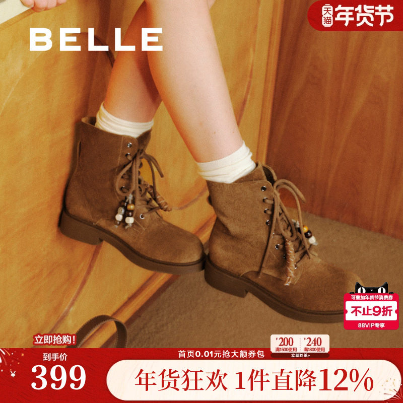 百丽荒野来信女靴复古英伦风工装靴两穿马丁靴休闲短靴B2746DD5
