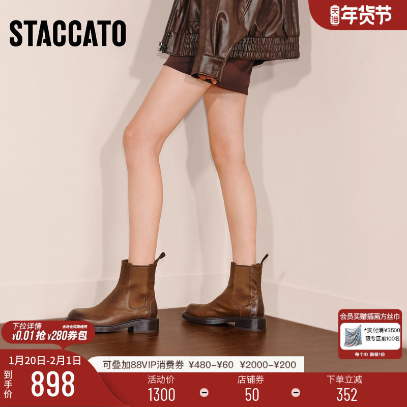 思加图新款海伦小姐复古英伦风切尔西靴短靴时装靴女靴子J8020DD5